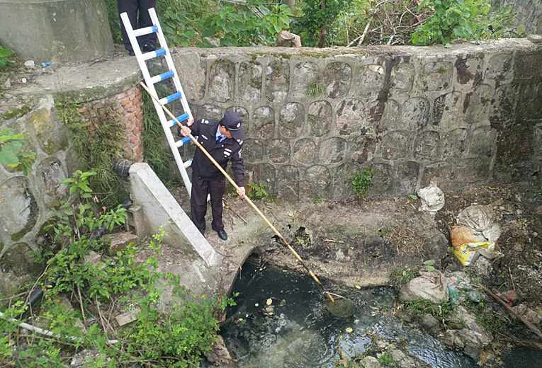 排水溝深且不利于清潔,我們保安保潔聯(lián)合配合進行清理,由于考慮到保潔員工年齡偏大,不利于打撈垃圾,為此安排保安利用長桿濾網(wǎng)進行打撈工作,把漂浮物礦泉水瓶進行清理打撈工作,同時為了進一步清潔到位,安保人員利用扶梯進入排水溝進行清潔,對此我們也進行相對應(yīng)的安全措施防止人員摔傷導(dǎo)致安全隱患。