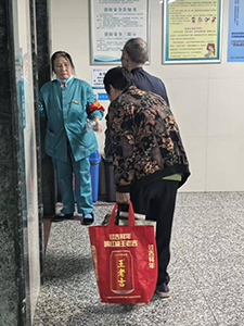 倪阿姨趕忙放下手中的清潔工具,快步走到老人家身邊。詢問(wèn)后得知,老人家要去配藥,但對(duì)醫(yī)院的環(huán)境不熟悉,不知道該去哪里。倪阿姨毫不猶豫地說(shuō):“大爺,您別著急,我陪您去。”