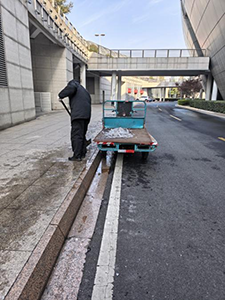 由于長(zhǎng)時(shí)間低溫,積雪已經(jīng)凍得像石頭一樣堅(jiān)硬,每一鏟下去,都只能鏟起一小塊,而且還會(huì)發(fā)出刺耳的聲響。龍拾如的手被凍得通紅,虎口也因用力過度而微微顫抖,但他沒有絲毫怨言。經(jīng)過一番艱苦的努力,冰層終于被撬開了一個(gè)口子,龍拾如順勢(shì)將碎冰和積雪鏟到三輪車?yán)铩.?dāng)一處隱患被排除,他又馬不停蹄地趕往下一個(gè)積雪點(diǎn)。
