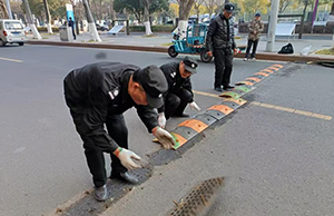 緊接著,團(tuán)隊(duì)成員齊心協(xié)力,將新減速帶精準(zhǔn)搬運(yùn)至預(yù)定位置,并細(xì)心調(diào)整,確保排列得既整齊又美觀。在安裝過程中,他們更是嚴(yán)格遵循規(guī)范流程,每一顆螺絲的緊固、每一個(gè)角度的調(diào)整都力求完美,確保新減速帶不僅安裝得穩(wěn)固可靠、位置精準(zhǔn)無誤,更能有效發(fā)揮其減速警示的功能,為過往車輛與行人筑起一道安全防線。