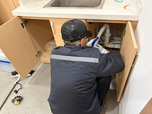 近日,水杉路社區(qū)辦公室臺盆下水管道突然出現(xiàn)堵塞滲漏問題,嚴(yán)重影響了工作人員的日常辦公效率,給社區(qū)服務(wù)工作開展帶來不便。接到社區(qū)趙書記反饋后,物業(yè)服務(wù)中心高度重視,第一時間安排工程部資深技工張師傅前往現(xiàn)場處理。